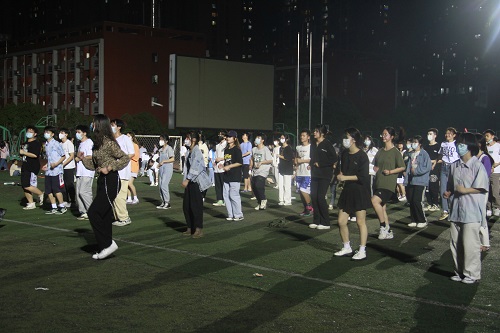 “音乐起!”伴随着乐队主唱的清嗓,一场校园草坪音乐会在操场拉开帷幕。彩色灯带环绕在操场中间,鼓手、吉他手等渐入佳境,现场师生跟着音乐的节奏,律动摇摆好不热闹。而青春版的广场舞亦吸粉无数,轻盈洒脱的舞步展现出工院学子活力四射的青春姿态,引得师生驻足观看尖叫连连。