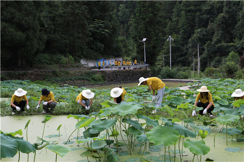 三下乡“助理乡村 绿色循环”志愿服务小分队清理荷塘