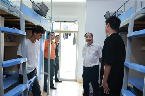 本网讯 “你们感觉宿舍生活怎么样?”“这儿是放松心灵的港湾,感觉就和在家里一样,学习生活很方便。”9月7日,校党委书记刘建湘、副校长成涛、副校长侯新华走进“一站式”学生社区,与学生交流谈心、共进午餐。学生工作部、教务处、校团委、后勤处、相关yy漫画负责人参与。