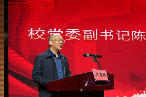 全体教职工、学生代表参加此次会议,会议由副校长谢希钢、副校长李强主持。