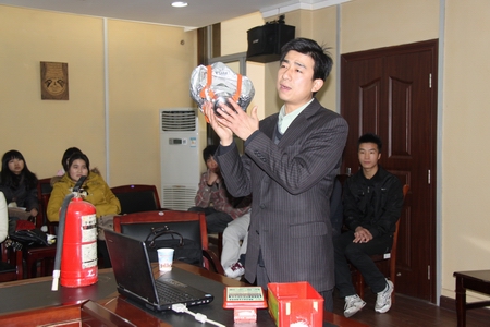 郭文光主任从火灾事故产生的原因、逃生方法及火灾的预防、灭火器材的使用等方面作了生动、详细的讲解。一张张震撼人心的照片、一个个令人深思的故事,让与会人员深受震撼,深感消防安全的重要性。