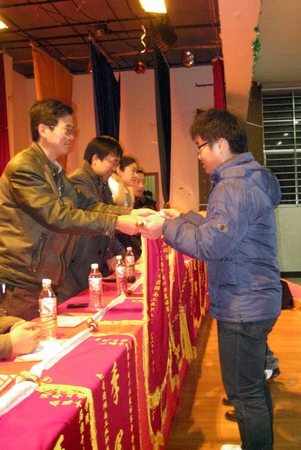 学生工作处副处长梁艳宣读了2010级“团、学”干部培训班表彰决定。在近一个半月的学生干部培训班学习期间,班委会分别组织开展了篮球赛、拔河比赛以及跳绳比赛等丰富多彩的课余活动,涌现出了一大批积极向上、表现突出的学员和优秀集体。其中电气工程系团学联合会获得“最佳组织奖”、院学生会荣获“优秀集体奖”,同时还有73名同学获“优秀学员”奖、54名同学获“优秀心得”奖。到场领导分别为获奖集体及个人颁发了锦旗及荣誉证书。