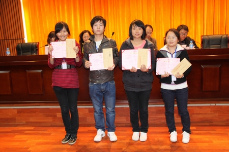 一整天激烈的技能比拼后,下午四点在我院多功能报告厅举行了颁奖典礼。本次比赛共决出四个比赛项目的前三等奖、一个优秀团队奖、七个团队鼓励奖等多个奖项。我院选手表现突出,满载而归,其中张文、曾冬华分别囊括了点钞、会计电算化一等奖;张洋,孙珍珍则分别获得手工操作流程二、三等奖;邹时勤、张玉梅分别获得会计理论知识二、三等奖。同时,我院还获得了点钞团队二等奖以及最具才智奖。
