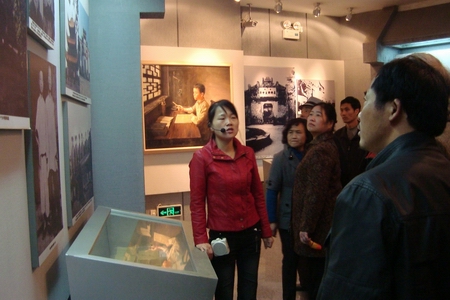 参观任弼时纪念馆,听取讲解员解说