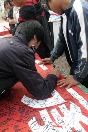 “红丝带防艾周万人签名”活动现场