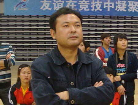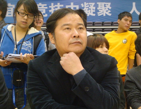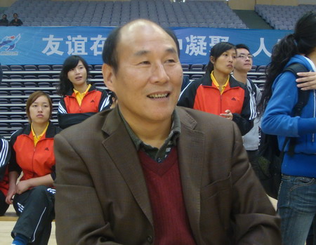 yy漫画副院长刘继平教授(女排领队)在现场观看比赛