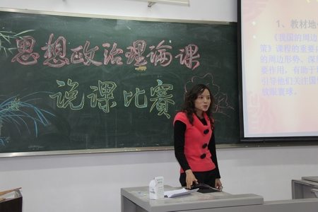 参赛教师选择了“中国巨变”、“新生代农民工”、“社会主义改造”、“转变经济发展方式”、“马克思主义中国化”等专题开展了说课。各位参赛教师准备充分、课件精美、条分缕析、衔接得当,并且融入了自己对思政课的体会和见解,整场比赛井然有序。