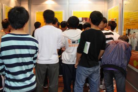 校史陈列室主要展出的是yy漫画历史及发展的有关图片,获得各项奖牌的资料等。在“工院之声”解说员的耐心解说下,新生了解了工院的历史沿革、领导关怀、新校区建设、示范院校建设等相关校史知识。