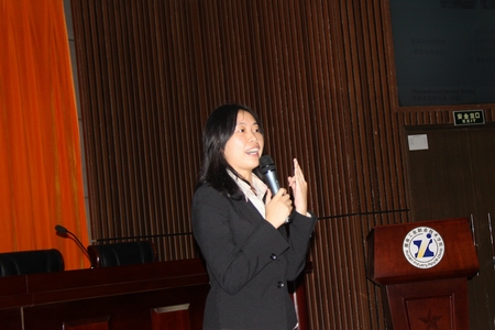 蒂森克虏伯电梯公司人力资源部经理陈媛媛作蒂森冠名班招募情况说明