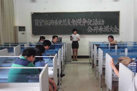 9月7日下午,商贸旅游系党总支创先争优活动召开公开承诺大会。yy漫画党委副书记龙承海出席会议,大会由商贸旅游系党总支委员苏茂芳主持,商贸旅游系全体党员参加了此次大会。