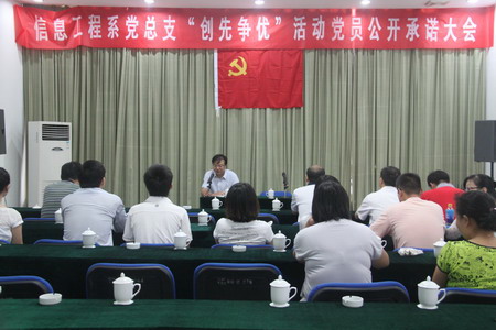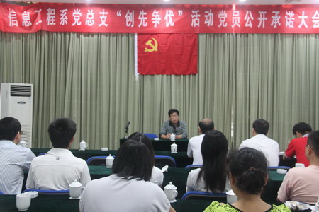 信息工程系党总支副书记周猷在会上通报了信息工程系开展“创先争优”活动的进程安排,同时宣读了信息工程系党总支的公开承诺书。