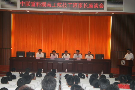 7月17日下午,我院在图书馆报告厅召开中联重科湖南工院技工班家长座谈会。中联重科混凝土机械公司人力资源部部长黄海波、主任何云峰,中联重科专车公司综合管理部经理杨国庆,我院党委副书记周立华,副院长董建国及各系部负责人,技工班全体学员和部分家长出席了座谈会。