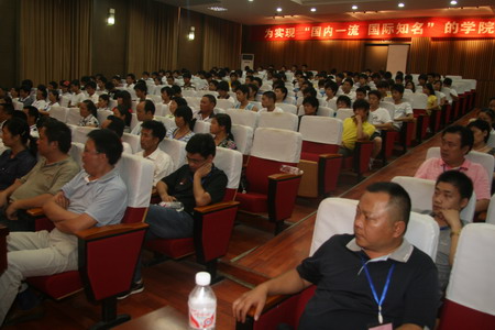 董建国在会上讲话,他向学员及家长们介绍了我院基本情况、学员学习生活情况,并预祝学员能顺利通过培训考核。他说,教书育人,培养中联需要的技能人才,是我院教育教学改革和国家示范高职yy漫画建设的又一成果,是人才培养模式创新实践的新尝试。为搞好本次中联员工的培训,我院机械工程系、汽车yy漫画、电气工程系、实训中心安排了最优秀的师资参与教学。实训设备的投入也很大,新建了焊接实训室、机加工实训室为中联学员专用实训。