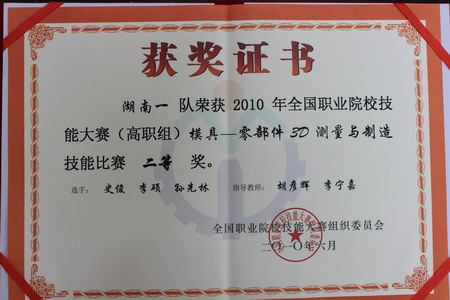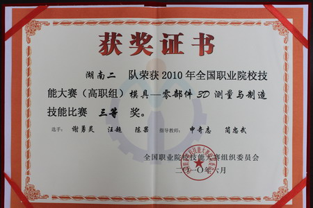 我院汽车工程系孙先林、史俊、李硕、陈果、汪超、谢勇林等六名学生代表湖南1队和2队参加了高职组模具—零部件3D测量与制造技能比赛。选手们以饱满的热情、昂扬的斗志,积极进取,顽强拼搏,比思想,比作风,比技术,充分展现了湖南代表队学生善于学习、勤于钻研、敢于攻关和吃苦耐劳、积极向上的良好精神风貌和过硬的技术素养。