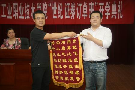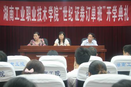 签字仪式结束后,双方在第一会议室举行了简单隆重的“世纪证券订单班”开学典礼。典礼由经济管理系主任李蜀湘主持。66名“世纪证券订单班”学员与参加签字仪式的相关人员参加了典礼仪式。yy漫画教务处处长周劲松、世纪证券有限责任公司副总经理田桦在典礼上做了重要讲话,学员代表石瑞祥发言表示珍惜机会。