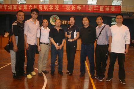 为促进高职yy漫画之间的交流和友谊,推动高职yy漫画教职工体育活动蓬勃发展。5月28 日,由湖南省高等职业体育工作研究会主办的2010年湖南省高职yy漫画“院长杯”教职工篮球赛在湖南现代物流职业技术yy漫画拉开帷幕,今年共有7所高职yy漫画代表队参加。我院党委书记廖洪元、院长刘建湘、党委副书记龙承海、副院长王柏林、副院长刘继平、工会主席张志勇等领导带队参赛。我院队员顽强拼搏,经过几场激烈角逐,最终荣获“院长杯”篮球赛二等奖。