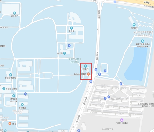 长沙南(李家塘)收费站出口绕城高速至学士收费站出口前行1公里即到。