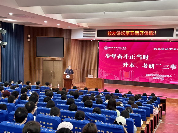 本网讯 5月30日,招生就业处举办了一场校友讲坛活动,活动以“少年奋斗正当时,升本考研二三事”为主题,邀请了三名今年考上硕士研究生的校友现身说法,讲述他们的奋斗故事,帮助在校生更好地规划未来。招生就业处老师及300余名学生参与讲坛活动。