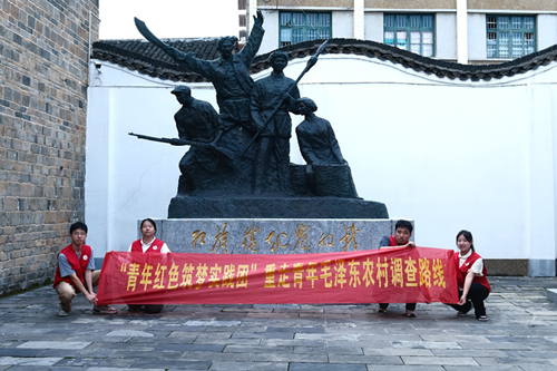 调研中,实践团走访了1927年毛泽东同志在衡山县的考察地址,与衡山县党史研究室、县文旅广体局、县文化遗产事务中心等部门工作人员、当地居民深入交流访谈,重温青年毛泽东当时的工作历程和重要指示精神。