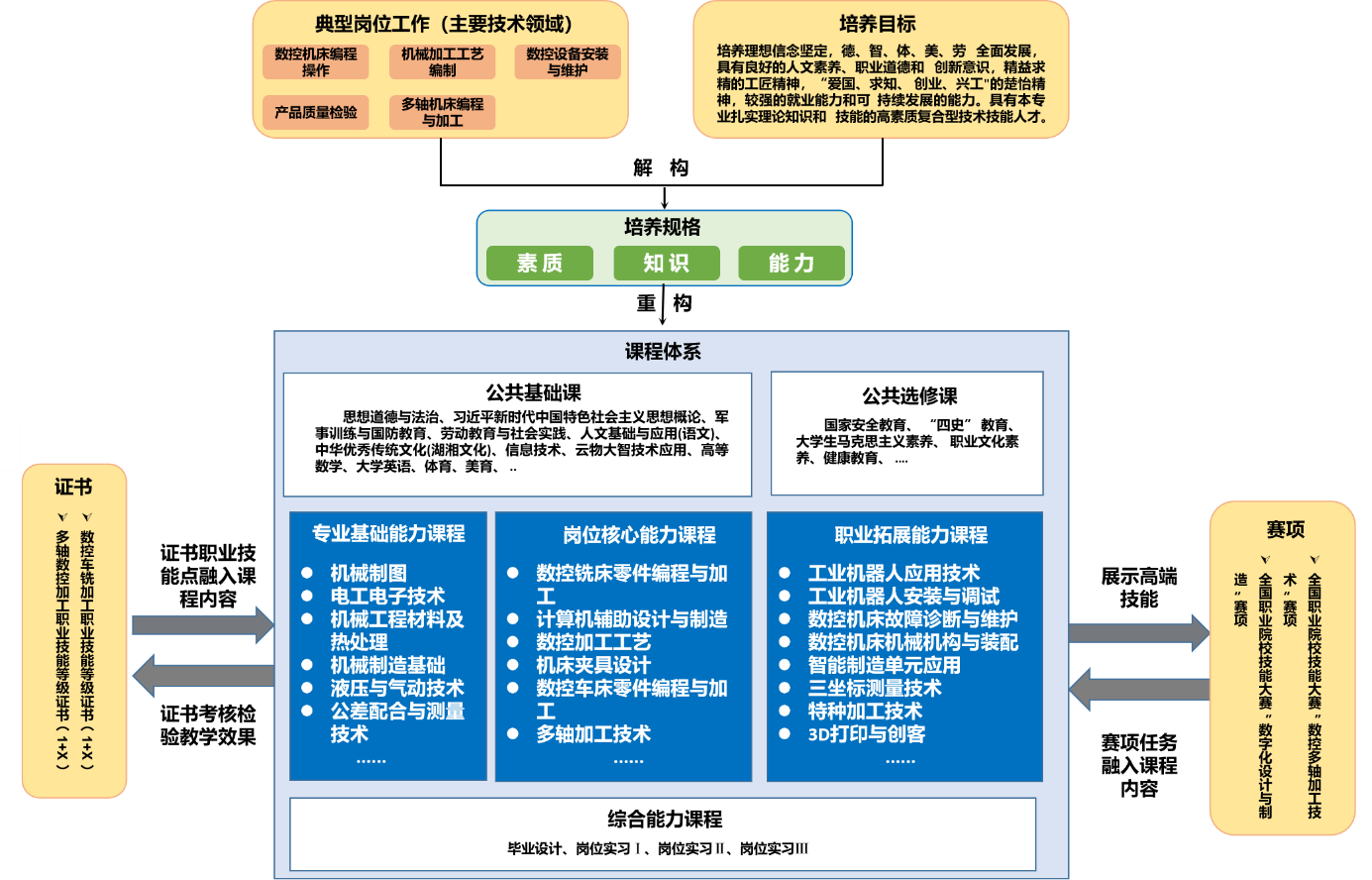 1.职业素养与安全文明生产教育; 2.机械加工安全知识,机床的操作及维护保养; 3.工量刃具的使用; 4.零件的加工工艺编制及切削参数的合理选择。 |