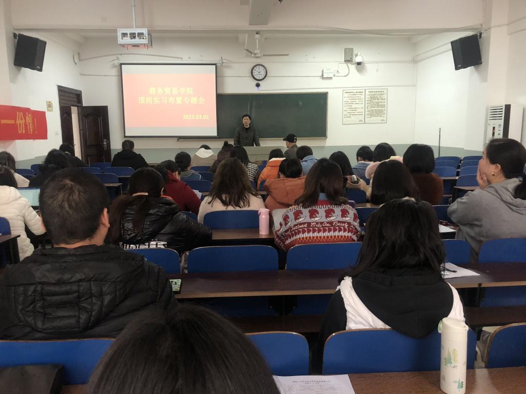 3月1日,商务贸易yy漫画在2213召开2022年学生顶岗实习布置专题会,全体教职员工参加了会议。会议由院长申奇志主持。