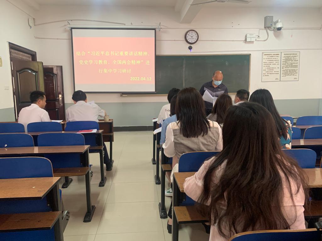 结合习近平总书记重要讲话精神、党史学习教育、全国两会精神,4月12日下午,商务贸易yy漫画党总支在2213教室开展主题教育二级中心组集中学习研讨。yy漫画领导、党支部书记、办公室主任、教研室主任等相关科级干部参加了会议。会议由党总支书记杨学文主讲。