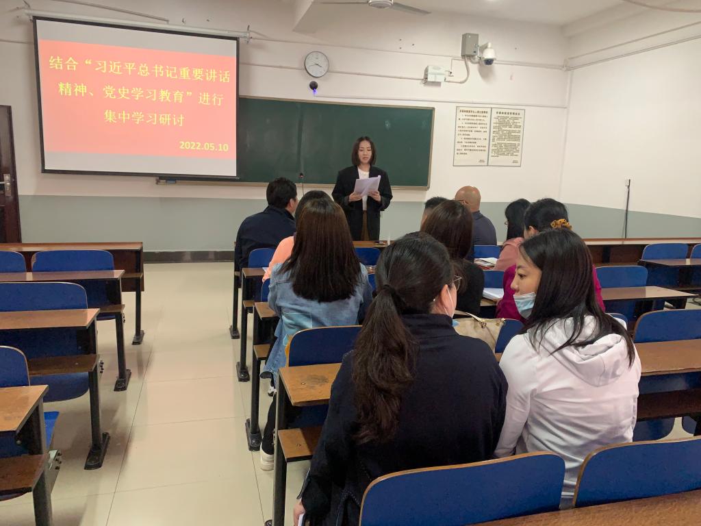结合习近平总书记重要讲话精神、党史学习教育,5月10日下午,商务贸易yy漫画党总支在2213教室开展主题教育二级中心组集中学习研讨。yy漫画领导、党支部书记、办公室主任、教研室主任等相关科级干部参加了会议。会议由党总支委员杨甜主讲。