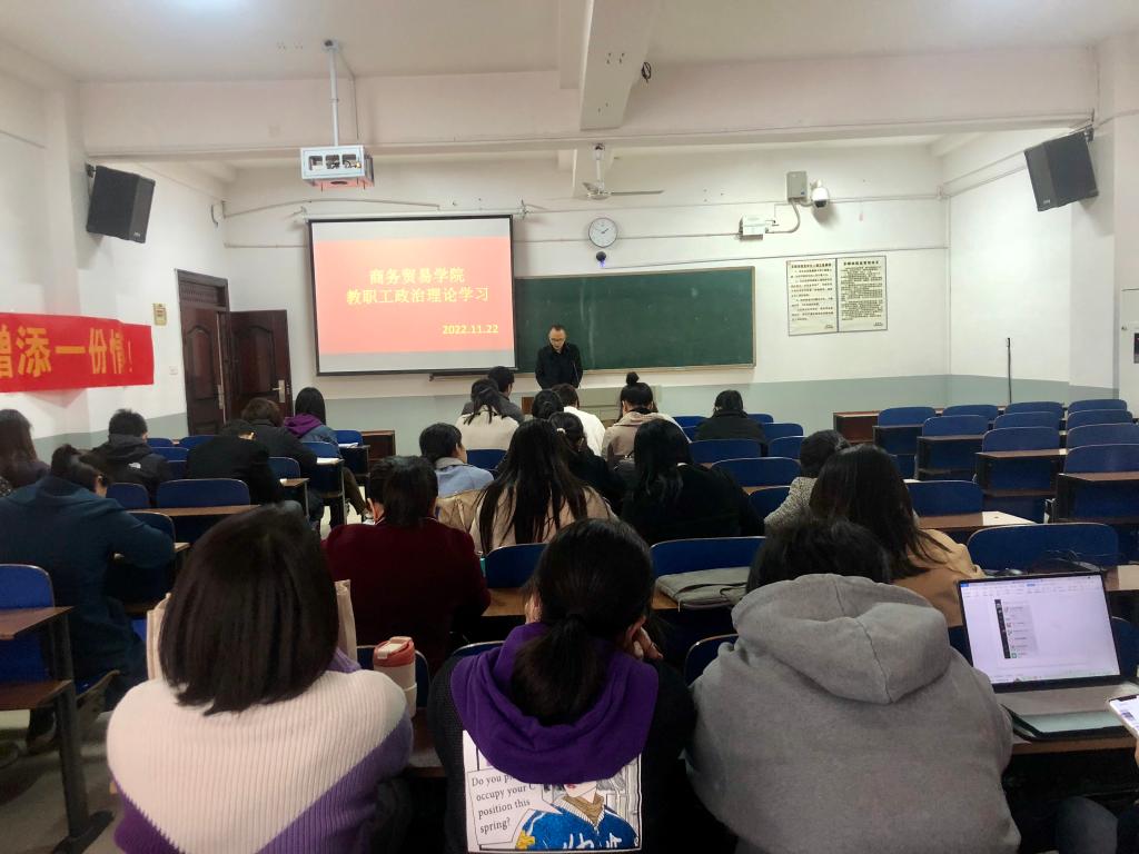 11月22日下午,商务贸易yy漫画在2213教室开展了2022年11月教职工政治理论集中学习。yy漫画院长申奇志,副院长吴代文、何倩,党总支副书记郑琪以及全体教职员工参加学习,会议由郑琪主持。