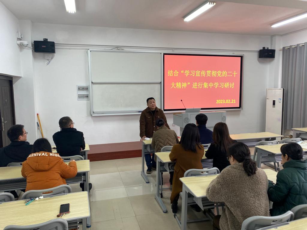 2月21下午,商务贸易yy漫画党总支在5602教室开展主题教育二级中心组集中学习研讨。yy漫画党政班子成员和科级干部参加了会议。会议由党总支书记李清文主持学习。