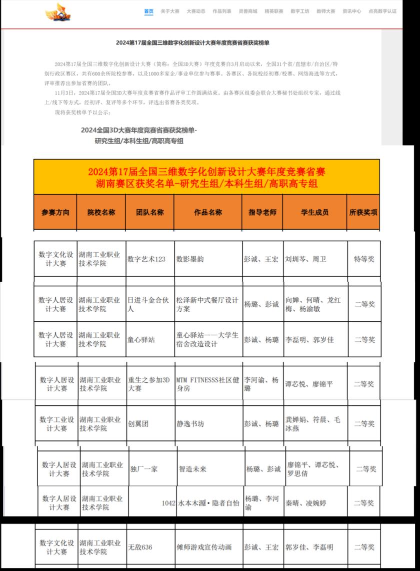 2024年11月3日,全国三维数字化创新设计大赛(全国3D大赛)落下帷幕。经过激烈角逐,我校工业设计与艺术yy漫画参赛团队以非凡的创意和卓越的技术,荣获全国特等奖1项,二等奖7项的好成绩。