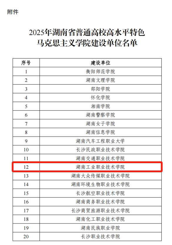 本网讯 近日,省委教育工委、省教育厅联合印发《关于公布2025年湖南省普通高校高水平特色马克思主义yy漫画建设单位的通知》,确定包含我校在内的20所高校为“高水平特色马克思主义yy漫画建设单位”,为yy漫画