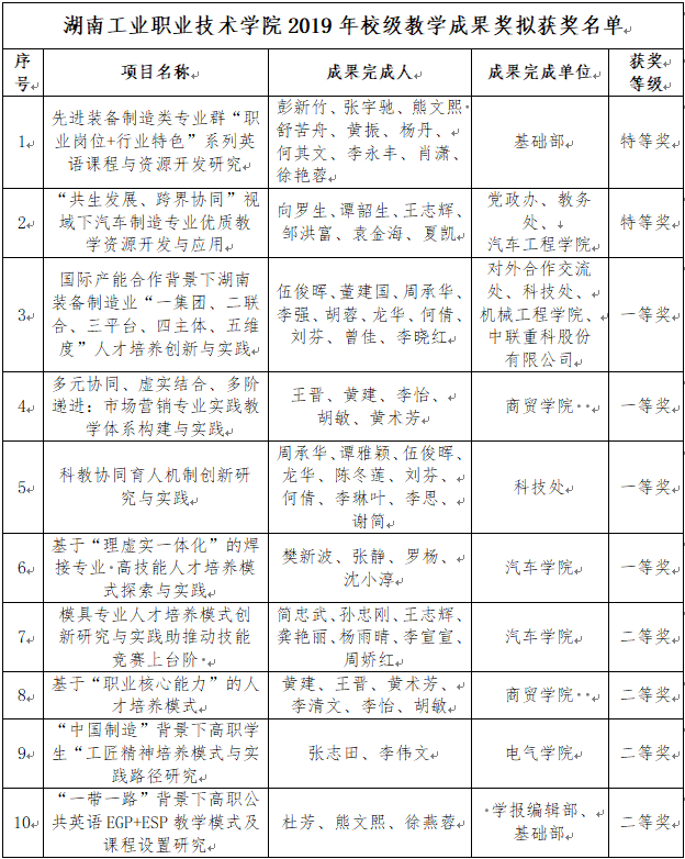 根据《关于组织申报2019年度院级教学成果奖的通知》的相关要求,yy漫画 开展了2019年度校级教学成果奖的申报和评审工作。经校内专家评审,yy漫画 审核批准,评选出特等奖2项,一等奖4项,二等奖4项,特此公示。如对评审结果有异议者,请在公示期内(2020年5月6日至5月8日)向监察审计处反映,联系电话82946125。